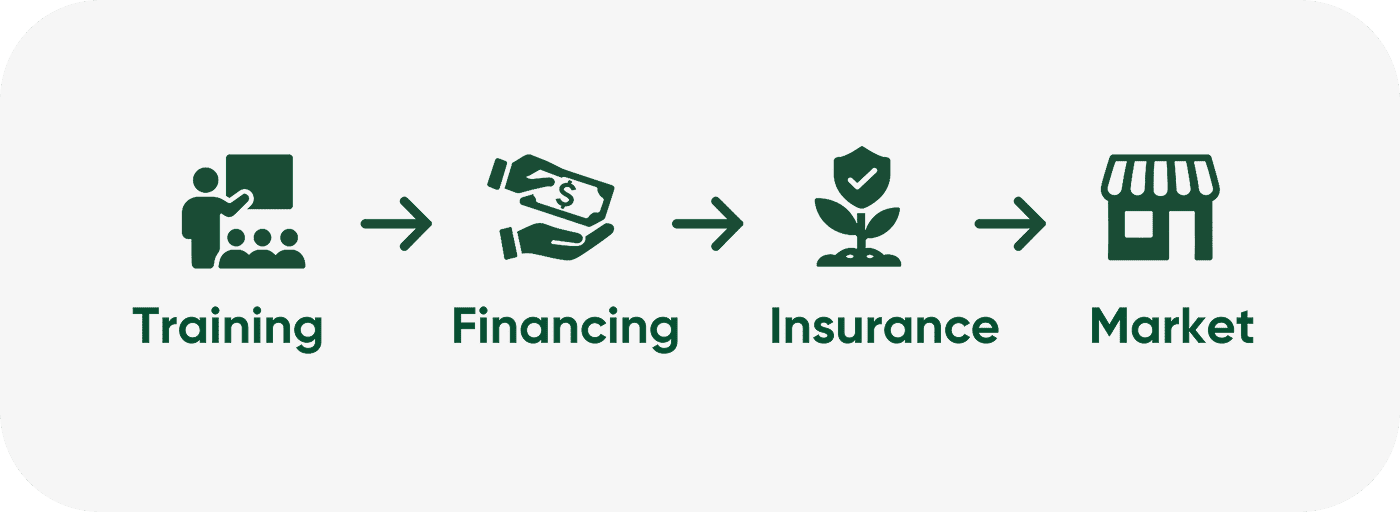 Training is delivered through a structured Academy that equips farmers with practical agronomy, cluster leadership, simple record keeping, and financial literacy. Field demonstrations and regular meetings keep farmers aligned with the farming calendar, reduce mistakes, and ensure continuous improvement through the season.